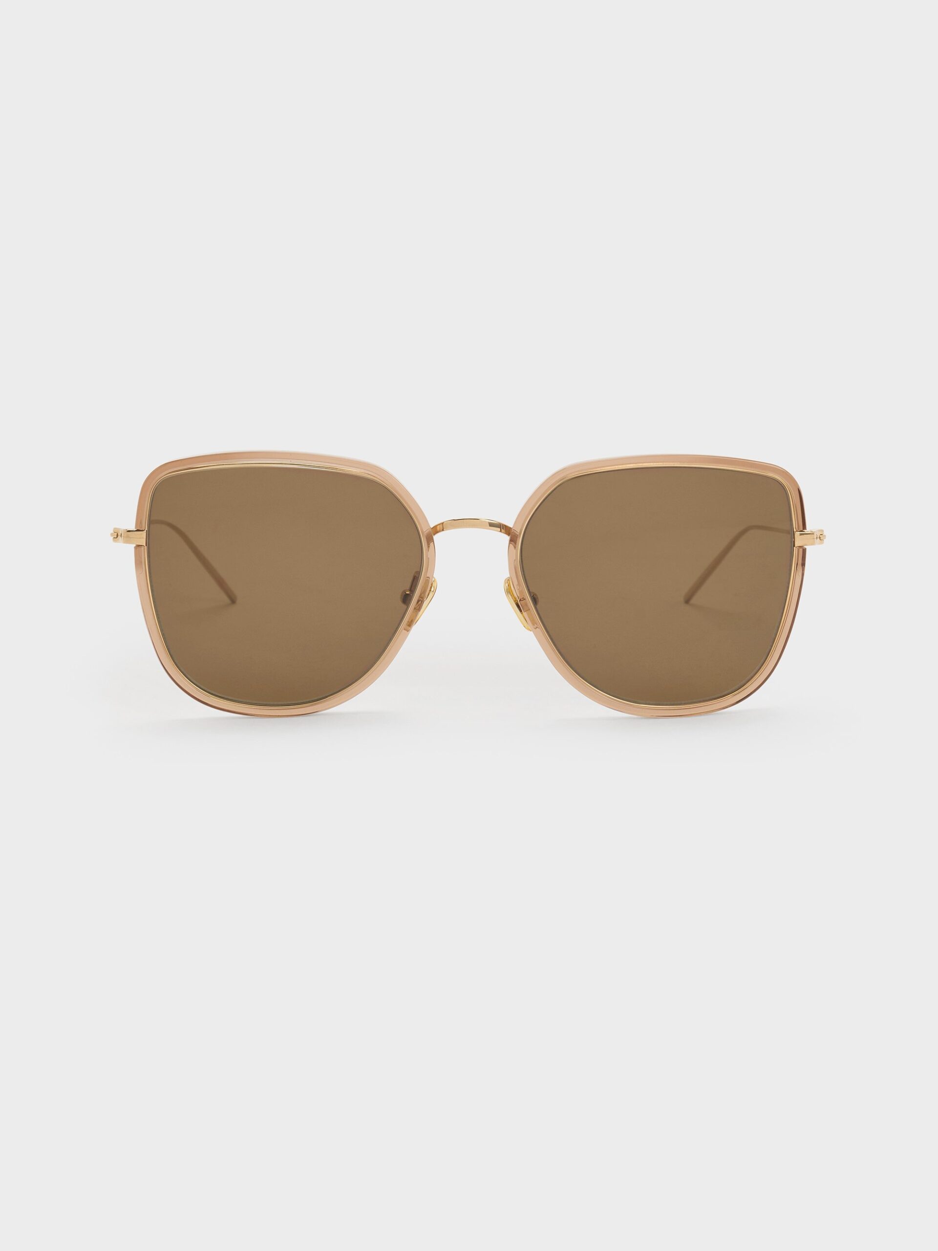 These Lisbeth sunglasses in chestnut brown feature oversized butterfly frames, tinted lenses and thin gold-tone arms. Wear them to add vintage charm and polished glamour to both your everyday looks and vacation outfits.