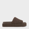 These dark-brown platform sandals offer a refreshing alternative to your usual black shoes while maintaining the same level of elegance and versatility. Featuring a textured finish, they rest on sturdy platform soles for a substantial height boost.
