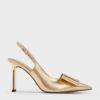 Featuring sleek pointed toes and a glossy patent finish, these leather slingback heels will add a sophisticated touch to any outfit. The adjustable slingback straps with elegant buckles ensure a customised fit for secure, all-day comfort.