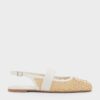 Nothing evokes the rustic charm of summer quite like a pair of woven flats. The woven construction of these Lyric flats enhance their breathability, making them ideal for hot weather. White straps and bows create an eye-catching two-tone finish. The elasticated slingback straps ensure a secure fit for all-day wear.