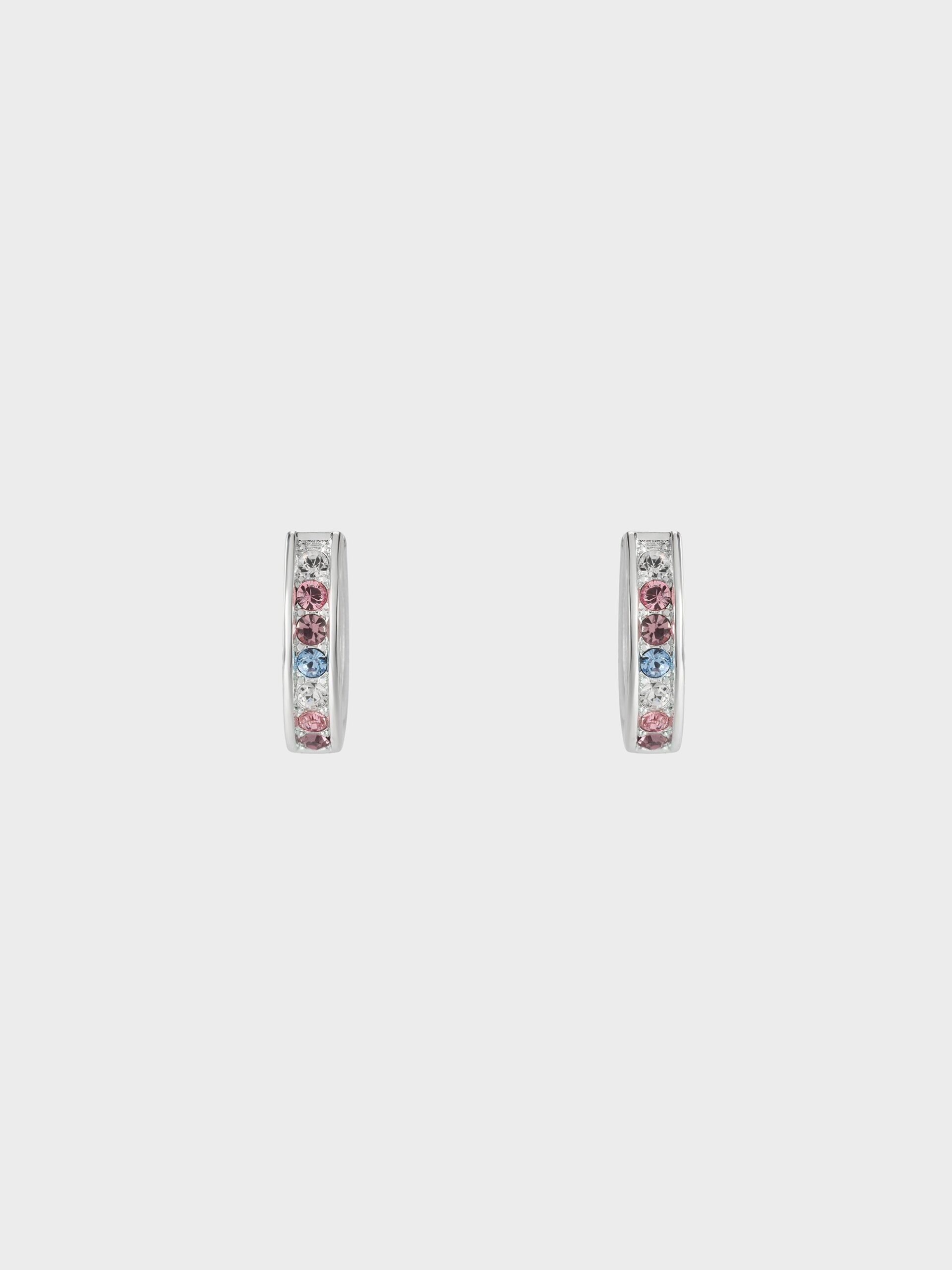A simple hoop design is elevated with multi-coloured faux crystals. The silver-tone finish not only bring a chic and contemporary feel, but will also match well with most outfits. These earrings will brighten your day with their eye-catching sparkle.