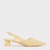 White shoes are a must-have for summer — these Meja slingback pumps are definitely a worthy addition to your collection. Featuring a lovely floral pattern, these polished pointed-toe shoes stand on low cylindrical block heels. They can be dressed up or down with ease.