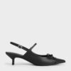 Metallic shoes will continue to trend into the fall. These shiny bow kitten-heel slingback pumps make a statement while remaining versatile enough to pair well with most outfits. They feature a pointed-toe design that creates a clean and streamlined silhouette that will flatter any frame. Their black patent cap-toes are juxtaposed against the eye-catching metallic uppers to create a striking two-toned finish. Set on low kitten heels, you can wear them for long hours in comfort.