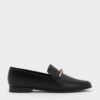 Let your chunky loafers take a backseat in favour of these sleek and sophisticated almond-toe loafers. Simple in design, the gold-tone metallic knot accents stand out beautifully against the clean black uppers, adding just the right amount of shine to elevate your everyday look.