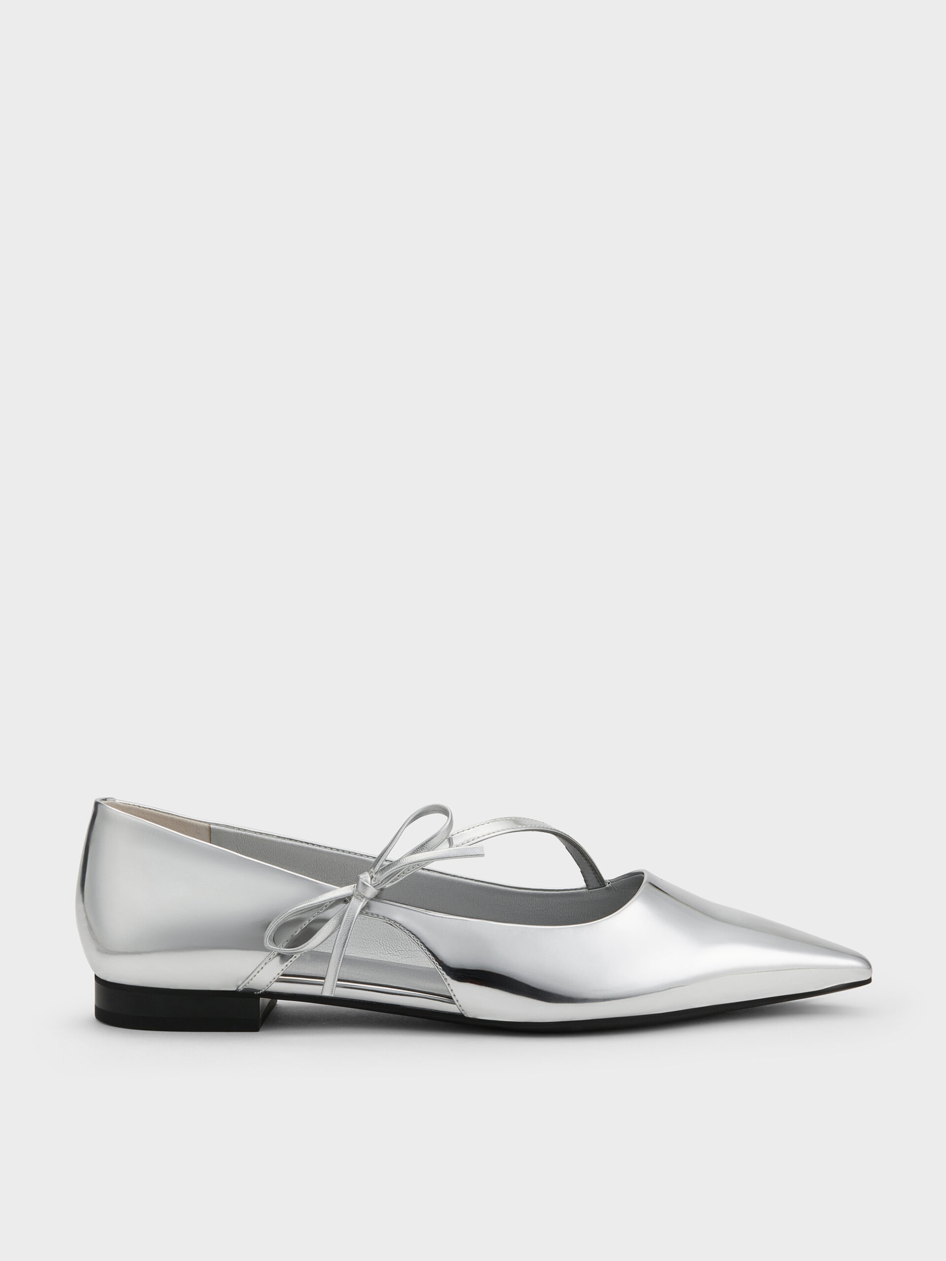 Elevate your everyday style with this pair of silver flats. Designed with bow-strap detailing and a striking silver finish, they will stand out no matter where you wear them to.