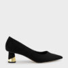 These pumps that are a timeless pair and a must for your shoes rotation. Featuring a covered pointed toe and metallic sculptural heel, they are an epitome of elegance and grace. Made in a simple and versatile chalk-white hue, these gems can be paired with all your outfits. Style them with a tie-dye ruched romper for a semi-casual look.