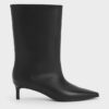Make a statement in comfort with these kitten-heel calf boots. The well-balanced silhouette juxtaposes wide-fit shafts with sharp, tapered toes to create a flattering yet comfortable take on classic calf boots. In luminous silver, they will add an eye-catching dimension to your ensembles — the wearability of the kitten heels make this a surprisingly versatile option to reach for.