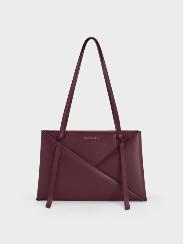 This Midori tote bag in wineberry red features a geometric panelled finish, double handles and a structured body. It will complement minimalist everyday ensembles with its clean lines and sleek details.
