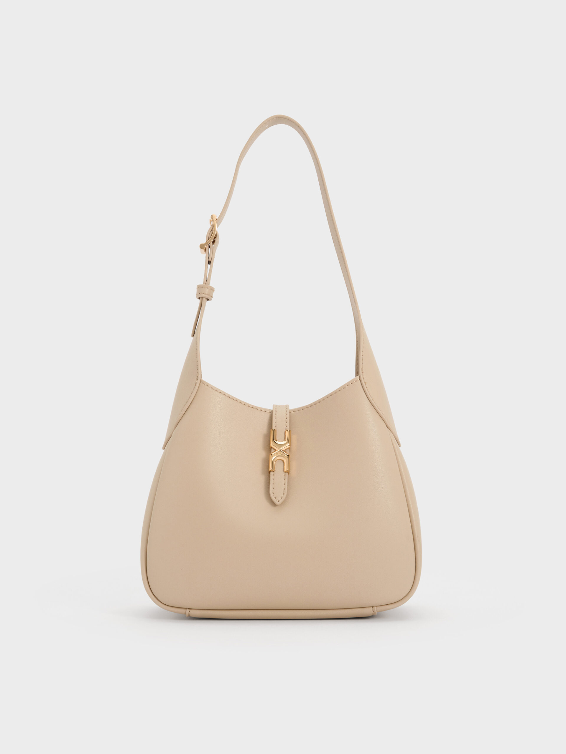 This Mini Adalyn hobo bag in dusted oat features a metallic buckle, belted strap and a softly curved body. Style it with relaxed tailoring for a sophisticated outfit that is perfect for work and casual gatherings