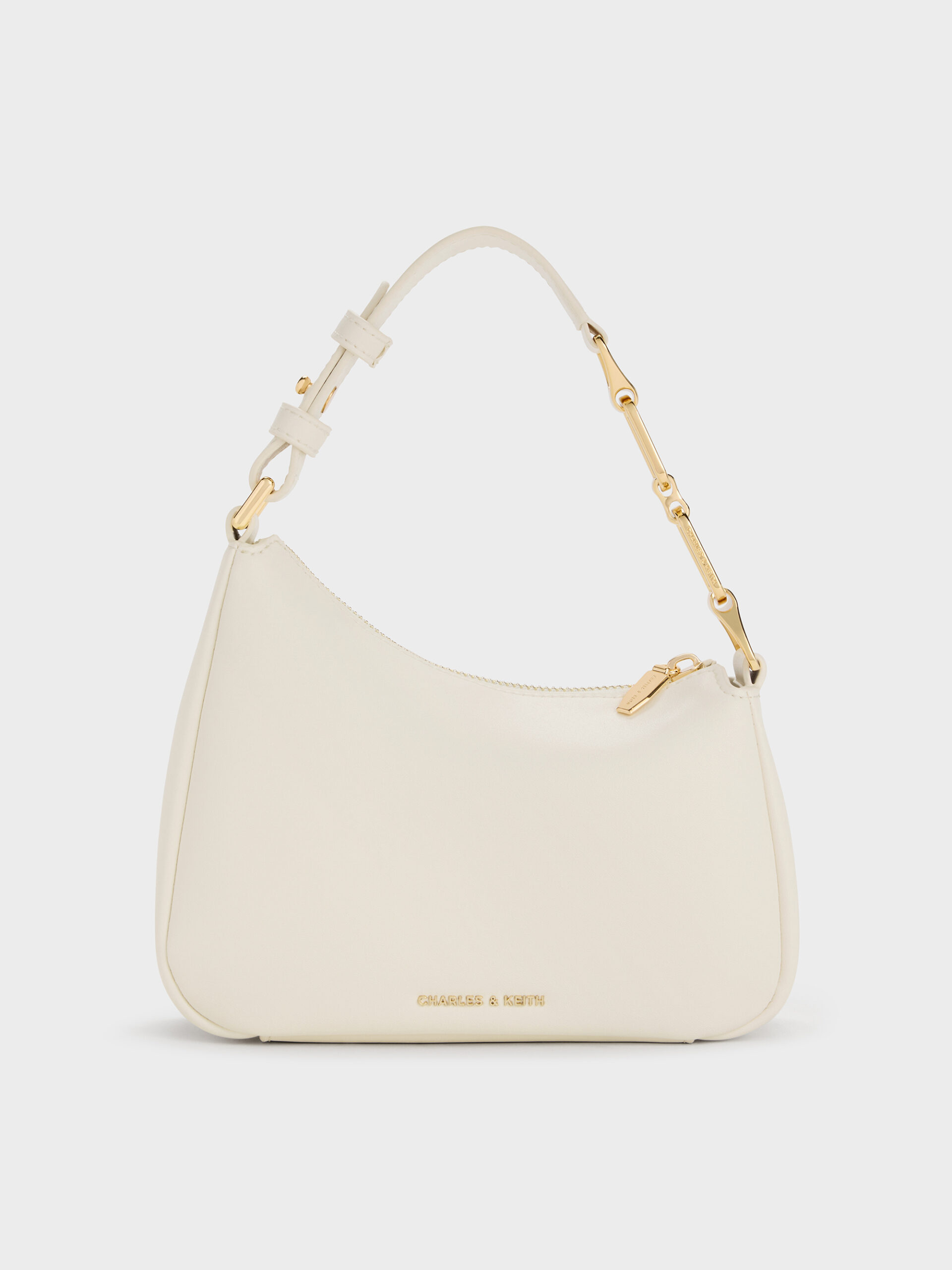 This Mini Agatha shoulder bag in cream features an asymmetrical design, a distinctive chain accent, a zip closure, and a detachable strap that can be adjusted. Sleek and subtly glamorous, it will work well for both workdays and the weekends.