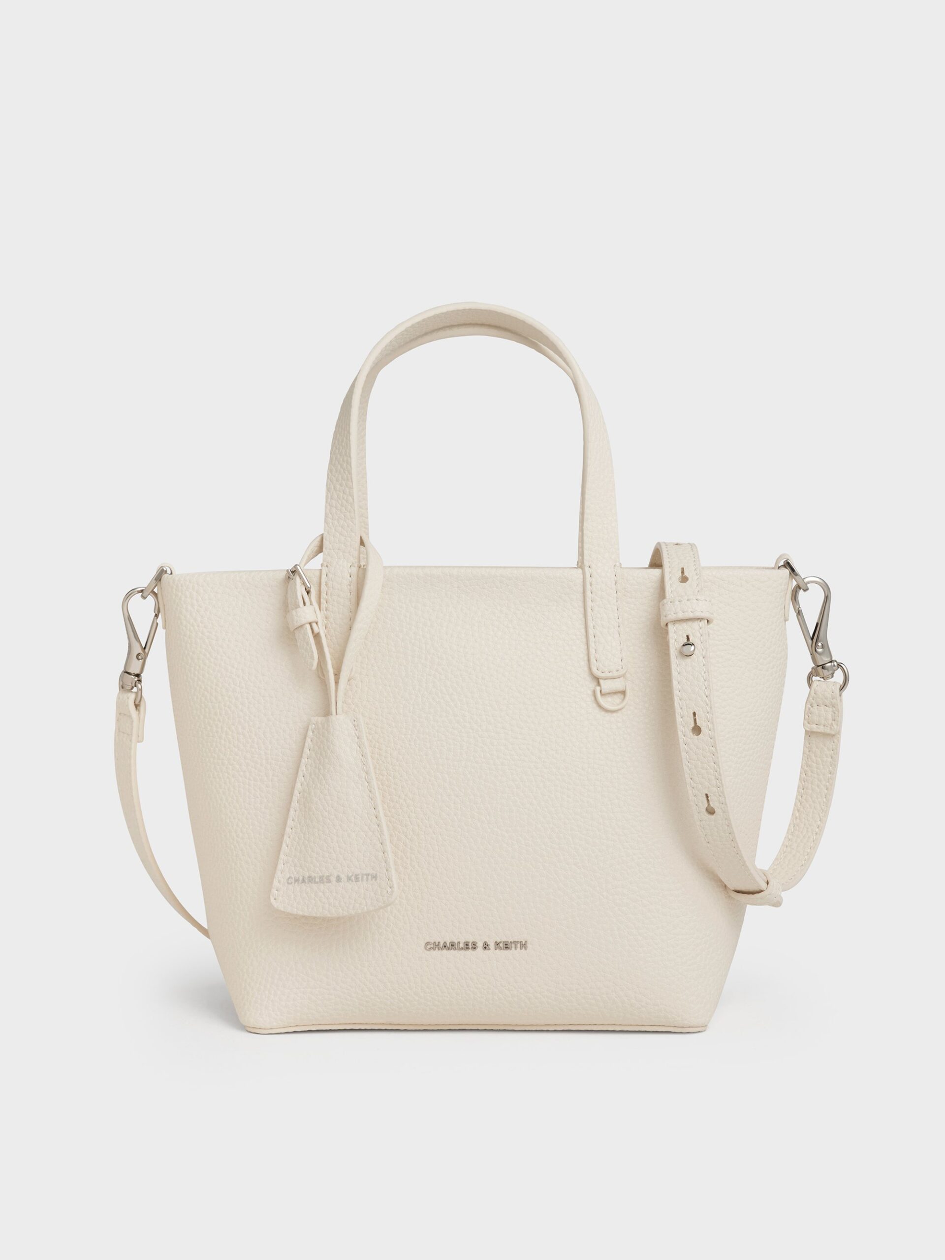 Keep your essentials close with the mini Beryl tote. The minimalist design and immaculate cream finish create a versatile silhouette that can be styled with all kinds of outfits. For added flair, it also comes with a detachable charm in a matching finish.