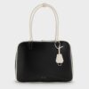 This mini Sianna bowling bag features a black body with white trims, short rounded handles and a boxy shape. It also comes with a detachable shoulder strap. Carry it to inject stylish contrast and structure into casual weekend ensembles.