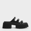 Effortlessly chic and modern, these new Nadine sandals are a standout pair in their own right. The chunky 5.5cm platform soles will make you stand out from the crowd – they are eye-catching enough to turn heads wherever you go. Complemented by triple buckled straps and striking silver-toned hardware, these glossy all-black platform sandals will complete any look with an edgy aesthetic.