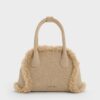 This Nelly shoulder bag in beige is made with recycled suede and trimmed with faux shearling. It features an east-west silhouette and elongated double straps. It balances a cosy seasonal aesthetic with modern polish.Recycled suede requires a little extra care. After each use, gently brush the surface in one direction with a soft brush to remove dust and dirt. For stubborn stains, lightly dampen a cloth with a mild cleaning solution and gently rub the fabric until the stain is gone.