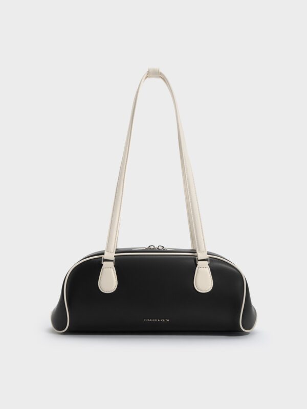This Nelly shoulder bag has a black body with white handles and trims. It also features elongated double handles and a double-zip closure. Use it to add a striking yet versatile detail to polished daytime looks.