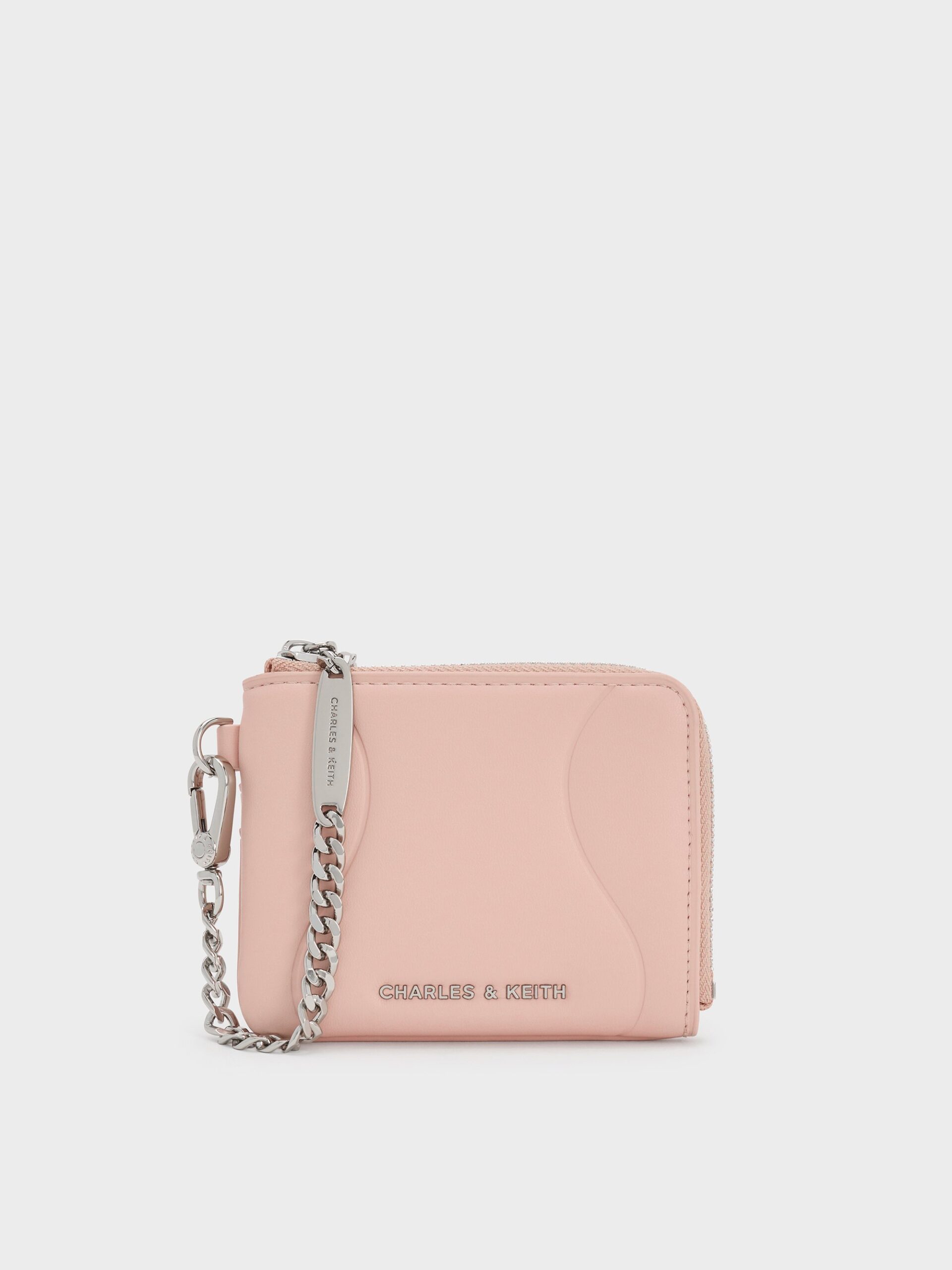 This Nelly wristlet in light pink features wavy panels, a compact body, an edgy chain strap and a zip closure. Use it to bring soft structure and pretty colour to your everyday routine.