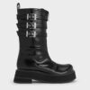 Want to create an edgy fall look? These calf boots are a cool-girl approved choice. They feature front zippers enhanced by not one, not two, but three buckled straps across the front, adding a striking detail to the design. With platform soles that offer a height boost without compromising comfort, they promise a steady tread. Plus, pull tabs on the back ensure ease of wear.