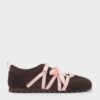 These sneakers in dark brown are made with nylon and feature a low-top design, contrast panels, lace-up fronts and flat soles. Wear them to balance sporty ease with earth-tone sophistication on off-duty days.