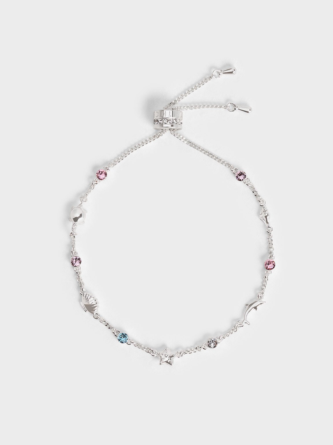 If you are someone who loves silver, the Oceana crystal bracelet is perfect for you. There is an undeniable allure to the cool, understated finish of silver, which will lend an effortlessly stylish edge to your outfit. Adorned with ocean-themed charms like seashells and starfish, sparkling crystal gems add touches of twinkle in between. Thanks to the convenient drawstring fastening, the width of the bracelet can be easily adjusted for both effortless wear and a secure fit.