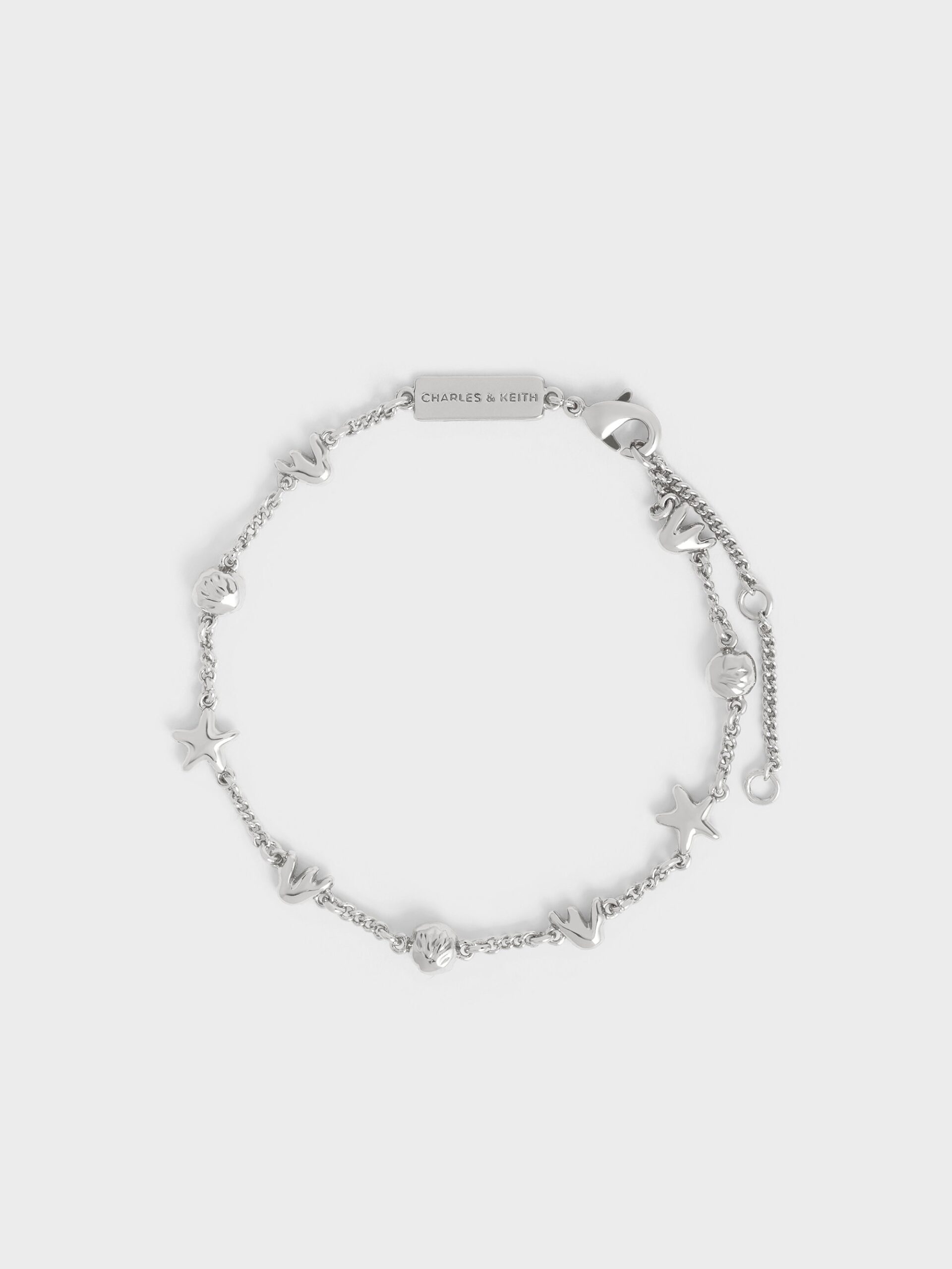 This Orinda bracelet in silver-tone finish features seashell and starfish charms for an ocean-theme bracelet that is perfect for everyday wear. It also features a lobster-clasp with additional hooks to accomodate different wrist sizes.