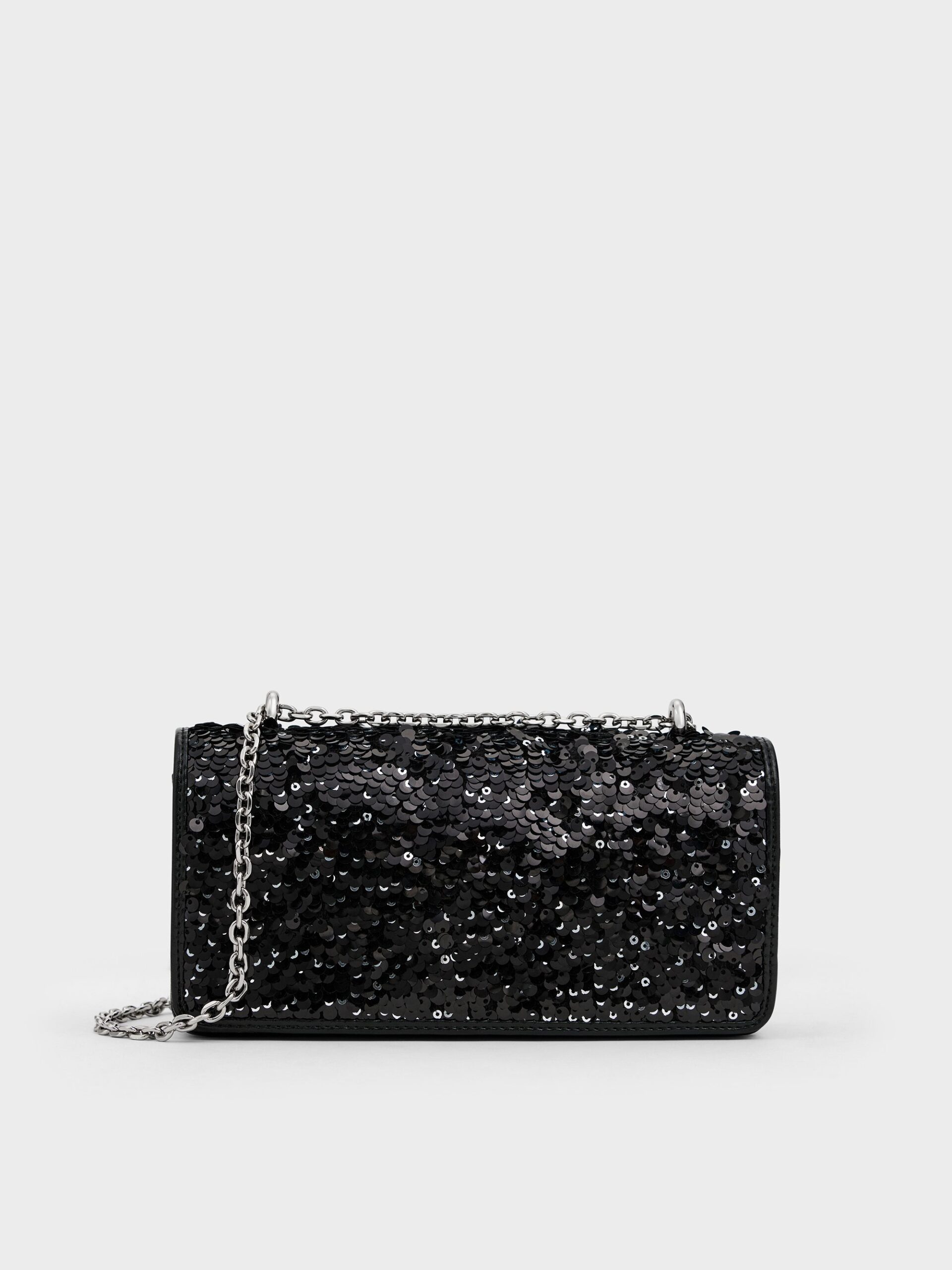 This Paffuto wallet on chain in black features all-over sequin embellishments, a chain handle and a classic rectangular silhouette. Perfectly sized to fit just the essentials, this sparkly piece will elevate your special-occasion ensembles with eye-catching shine.
