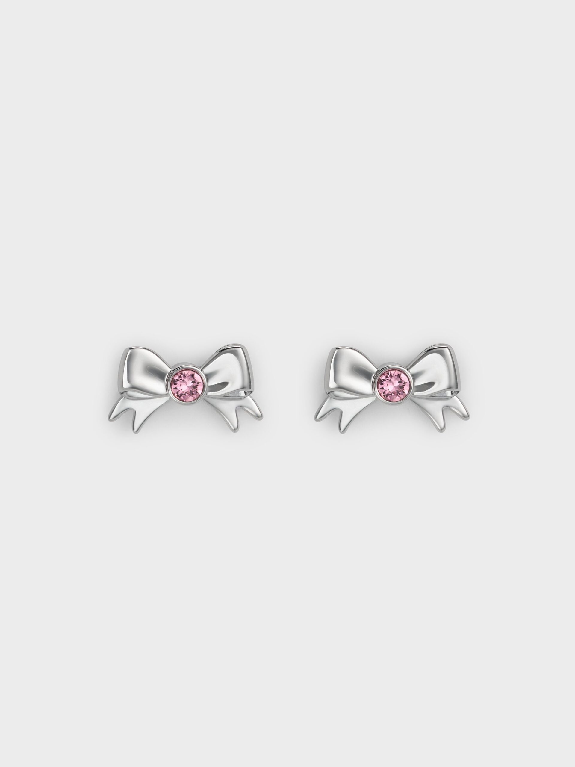 These Paige bow-shaped stud earrings feature a cool silver-tone finish, adorned with sparkling round pink crystals at the centre. Match them with the necklaces and bracelets from the same range for a coordinated look.