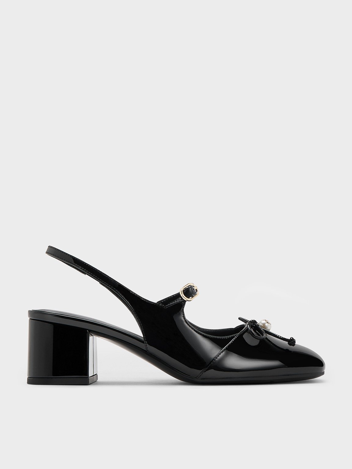 These slingback Mary Jane pumps embody the trendy coquette aesthetic. Adorned with dainty bow embellishments and floral-shaped gems on pearlescent beads, they create a striking contrast with the all-black finish. Anyone will appreciate the comfortable height boost the block heels provide.