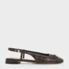The sophisticated crowd knows that slingback flats are a staple, and these put a modern spin on that. Rounded square toes are adorned with silver-tone metallic accents for an eye-catching yet sleek design. Dainty slingback straps ensure a secure fit while offering the breathability of the open-back style. With its shiny black patent leather finish, these can be dressed up or down for all occasions.