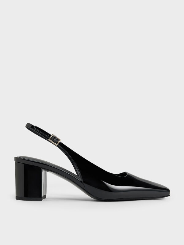 Sometimes, it is the seemingly subtle details that make a big difference. Switching things up from the pointed or round-toe style instantly makes the classic silhouette feel fresh and modern. Along with its ultra-minimalist design and polished black patent sheen, you can count on these shoes to put the finishing touch on any outfit of your choice. The elevated block heels ensure steady strides and comfort even as you walk in them for hours, while the adjustable slingback straps offer a secure fit.
