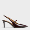These Mary Jane pumps in burgundy feature pointed toes, stiletto heels, slim buckled straps and elasticised slingback straps. Wear them to add a sophisticated touch and rich colour to your workday edits.