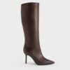 Elegant and statement-making, these dark-brown knee-high boots will elevate any outfit with a touch of effortless chic. Versatile enough to wear on repeat, their sleek pointed toes and stiletto heels create a flattering, leg-lengthening effect every time you put them on.