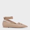 Taking inspiration from pointe shoes, these flats walk the line between the trending coquette and balletcore aesthetic. Featuring ribbon straps that create a criss-cross pattern at the vamps and are long enough to be tied around your ankles or up your shins for a bolder look. The elegant nude finish makes it easy to pair these with all kinds of outfits, so they are perfect as everyday shoes that you can wear on repeat.
