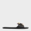 Found: the perfect summer sandals. In timeless black, this pair is effortless versatile, exuding understated elegance with every step. They boast a statement ring detail crafted from woven raffia material, which adds a natural touch to the design and accentuate their summer vibes. Easy to wear and style, these slide sandals will complement everything from denim shorts to linen skirts.