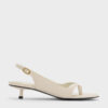 These thong sandals are the epitome of understated chic. The clean and minimalist design makes this all-white pair a good match with most outfits. Standing on kitten heels, they are comfortable enough to be worn all day.