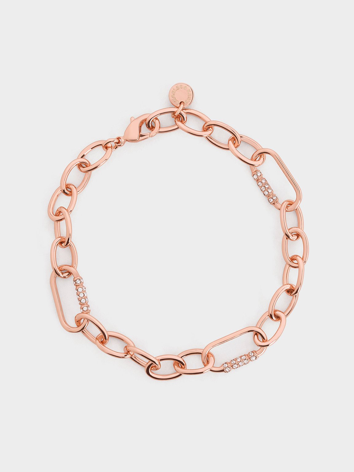 For a wearable yet glamorous addition to your everyday stack, the Reagan bracelet is the perfect choice. The classic chain-link design is adorned with Swarovski crystal embellishments that lend sparkle to the beautiful rose gold finish. Affixed with a lobster clasp, it is easy to put on and take off while offering a secure fit. Let this jewellery piece add a touch of elegance to all your ensembles.