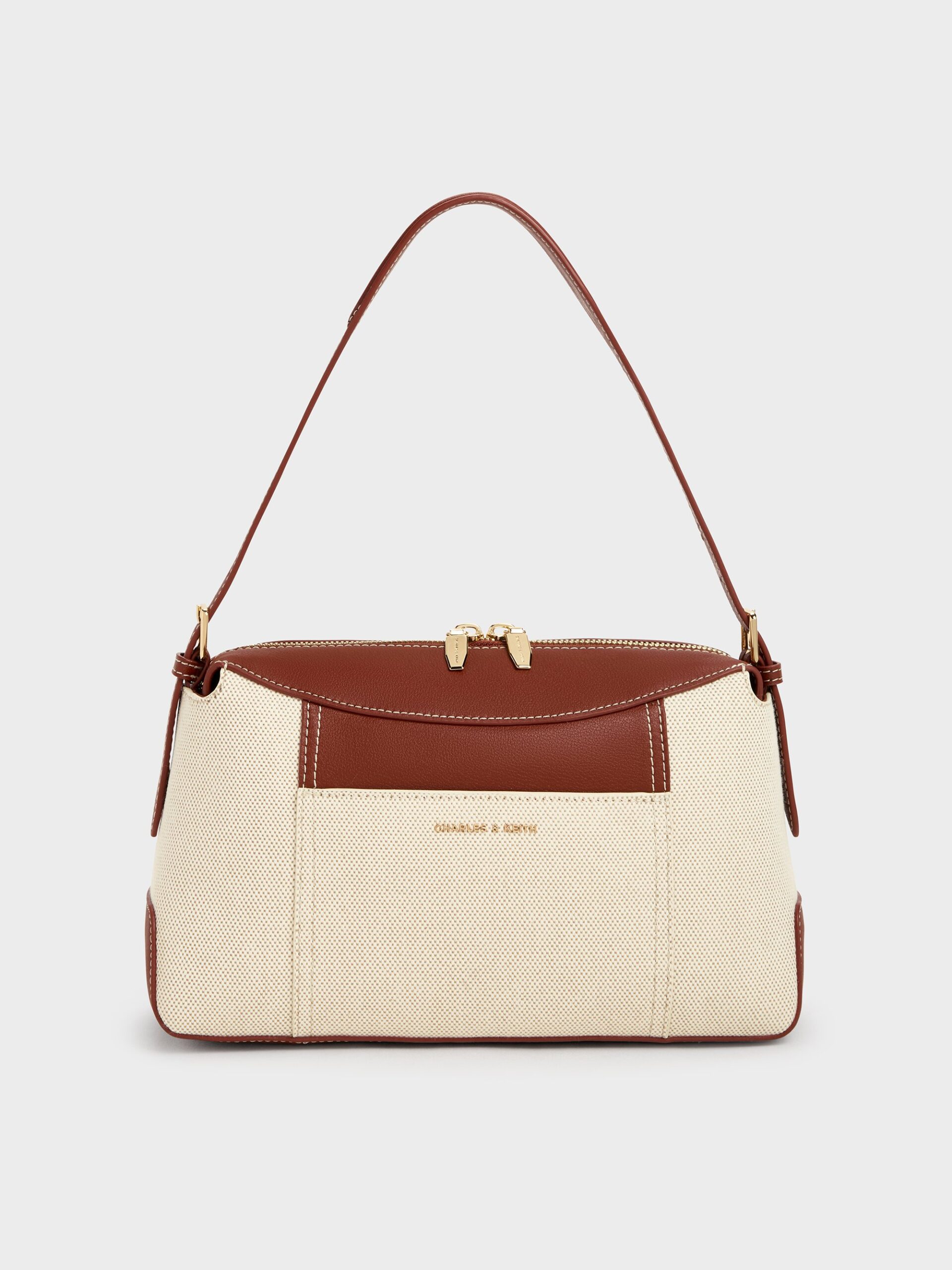 This Roan top handle bag in brick is made with canvas and features a two-tone design, a secure top-zip closure, an adjustable handle and a detachable shoulder strap. Carry it in your hand or sling it across your body.This product contains recycled material.