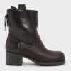 These Rosamond calf boots in dark brown feature lace-up backs, ridged soles and rounded square toes. Pair them with flowy skirts or jeans to bring warm colour and utilitarian charm to your everyday cold-weather looks.