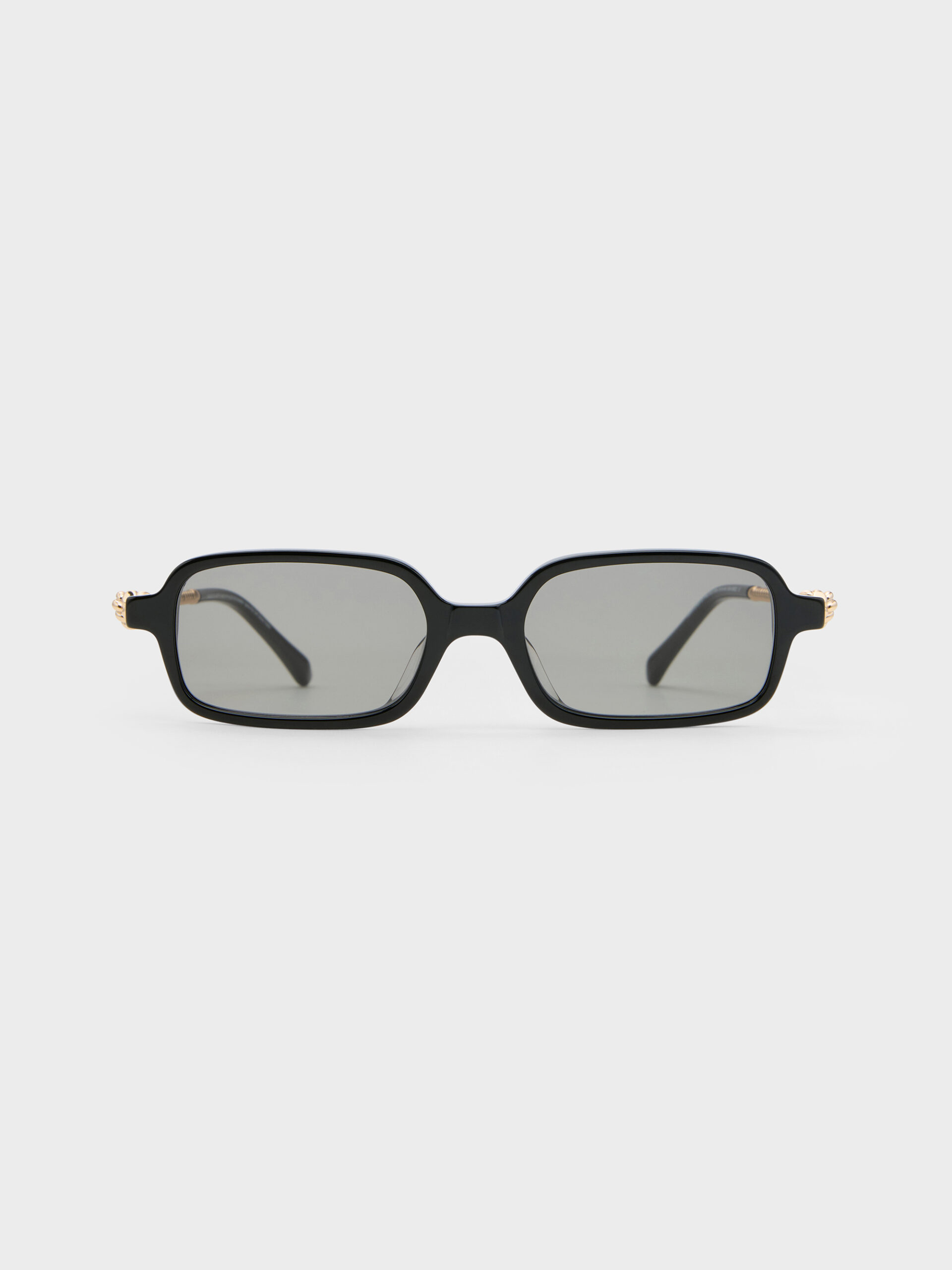 These Sable rectangular sunglasses in black feature rope-knot details on gold-tone metallic arms and classic angular frames. Bring this pair with you every day to protect your eyes from UV rays — they will also instantly elevate any outfit you have on.This product contains recycled material.