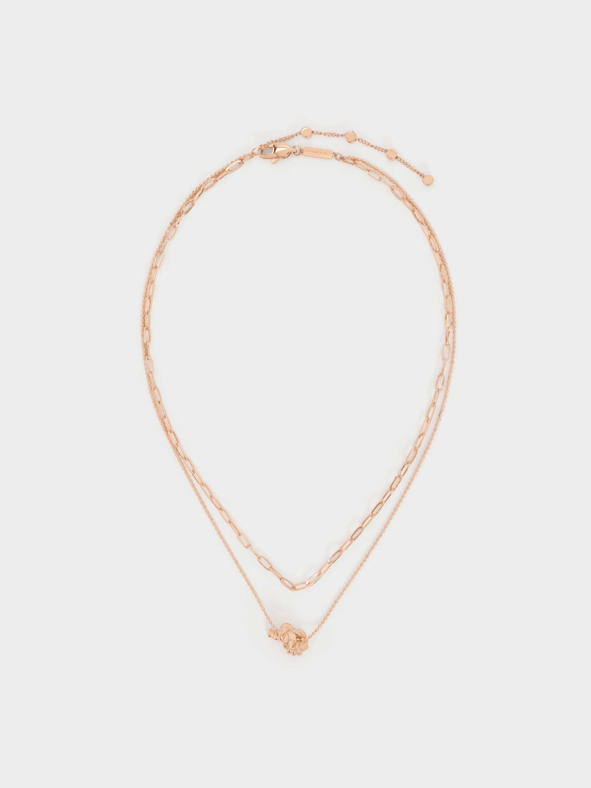 This Sable necklace in rose gold features a double-chain design that consists of a beaded chain and an oblong-link chain. A distinctive rope-knot detail is the focus point of this statement-making piece. Complement your favourite outfits with this elegant yet edgy necklace to refresh and elevate them.