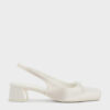 Elegant in their simplicity, these slingback pumps will add polish to any outfit � their smooth, glossy satin finish lends a luxurious quality to the minimalist design. With structured square toes and sturdy block heels, they are both chic and comfortable, effortlessly rising to any occasion.
