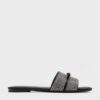 Looking to make a bold statement during the warmer months? Reach for these slide sandals. They feature straps embellished with tiny crystal gems for an extra sparkly, striking look, topped with pretty yet understated bows. Offering ease of wear with their backless, slip-on design, these slide sandals are truly effortless.