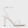 Amp up the glamour with these sandals. The elegant strappy design is rendered in a clean white satin finish to create a timeless silhouette. To add eye-catching sparkle, crystal embellishments adorn the straps and elevates the breathable open-toed style sandals. Set on slender stiletto heels, these will accentuate your feet and elongate the frame, making them the perfect statement sandals for festive occasions and upscale functions.