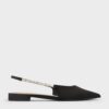 These black slingback flats are made of satin and feature crystal-embellished straps — elasticated for a secure and comfortable fit. Pair them with tailored trousers or evening separates for a refined look that brings understated sparkle to any occasion.