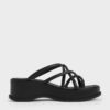 Subtle glamour will elevate your outfits, and this pair of sandals will definitely do the trick. The clean, sophisticated look of the strappy design is accentuated in a black satin finish, which creates a simple yet elegant silhouette. To add sparkle, the crystal embellishments adorning the straps are in a matching hue for an understated look. Set on sleek stiletto heels, they will maximise the leg-lengthening effect for a flattering finishing touch to your outfits.