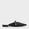 These flat mules in black are made with satin and feature dangling teardrop crystals, slim buckled straps and pointed toes. Wear them with tailored shorts for a simple yet refined look that is well-suited for casual daytime gatherings.
