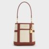 This Scottie bucket bag in cream features stitch-trim detailing, a shiny gold-tone lock charm, a magnetic closure, and a detachable strap. It will refine everyday outfits with its clean lines and soothing colour.This product contains recycled material.