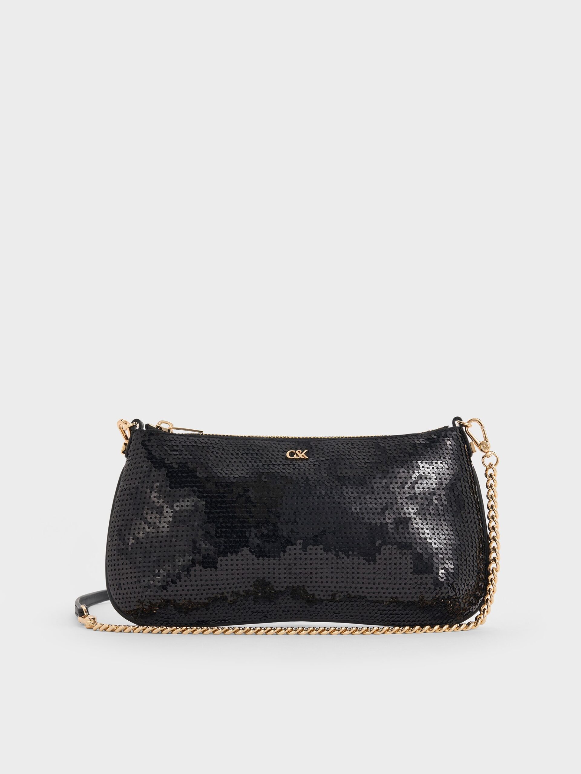 Made with high-quality leather and shiny sequinned mesh, this little black bag is a glamorous statement piece. The long shoulder strap and chain strap also offer styling versatility so it is well-suited for a variety of settings. Carry it as a clutch or opt for hands-free convenience.