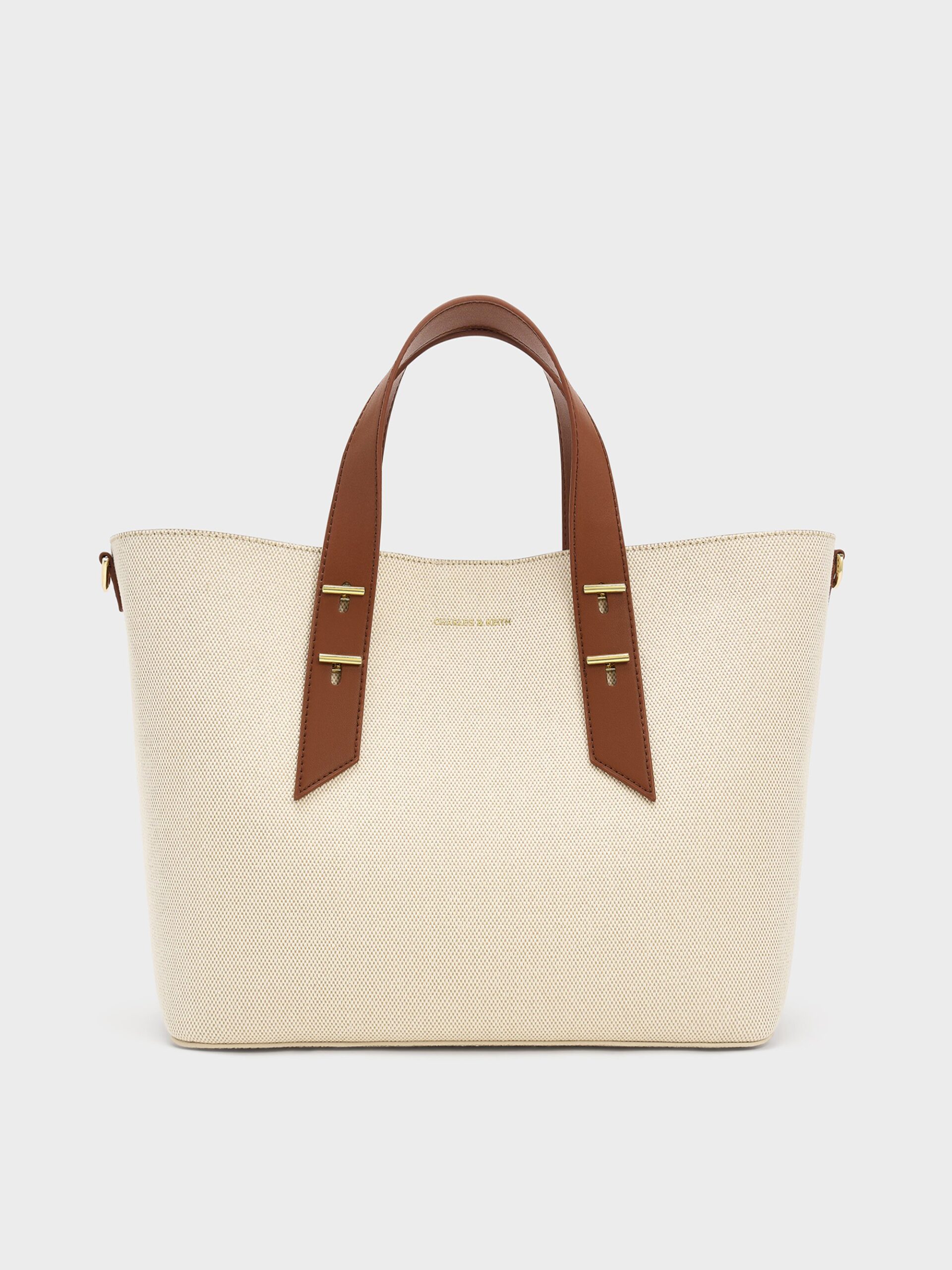 For a beautiful, neutral everyday carrier, this Shania canvas bag checks all the boxes. With a capacious interior and a slouchy silhouette, it is perfect for dress-down days at the office and casual days out. The smooth brown top handles and brown interior finish give visual contrast to the tactile canvas exterior to create a unique two-toned design. This bag also features subtle gold-toned accents for visual interest. Bonus points for the adjustable detachable strap.
