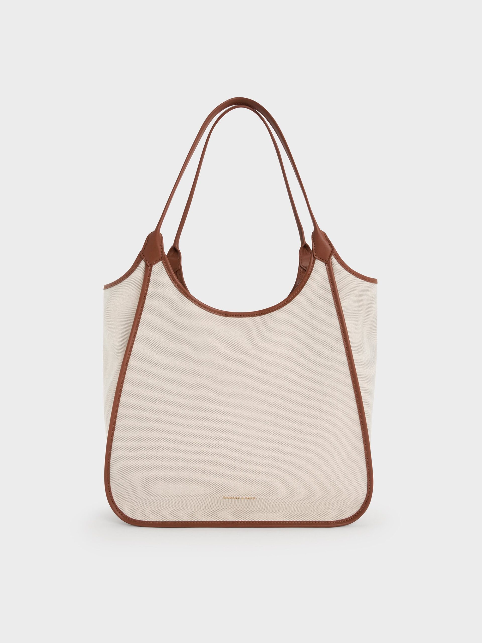 This Sianna tote is the only carry-all you&rquos;ll need this season. The canvas texture and contrasting brown trim add depth to the large-capacity construction, giving it a refined appeal. Whether you are carrying this to the office or the beach, it will hold everything you need.