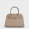 This Sianna bowling bag in sea salt blue features a rounded boxy silhouette, a polka-dotted finish, contrasting double handles, a double-zip closure and a detachable shoulder strap. Carry it to brighten weekend looks with stylish structure and playful details.